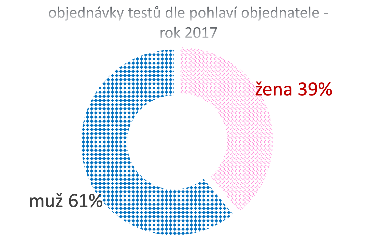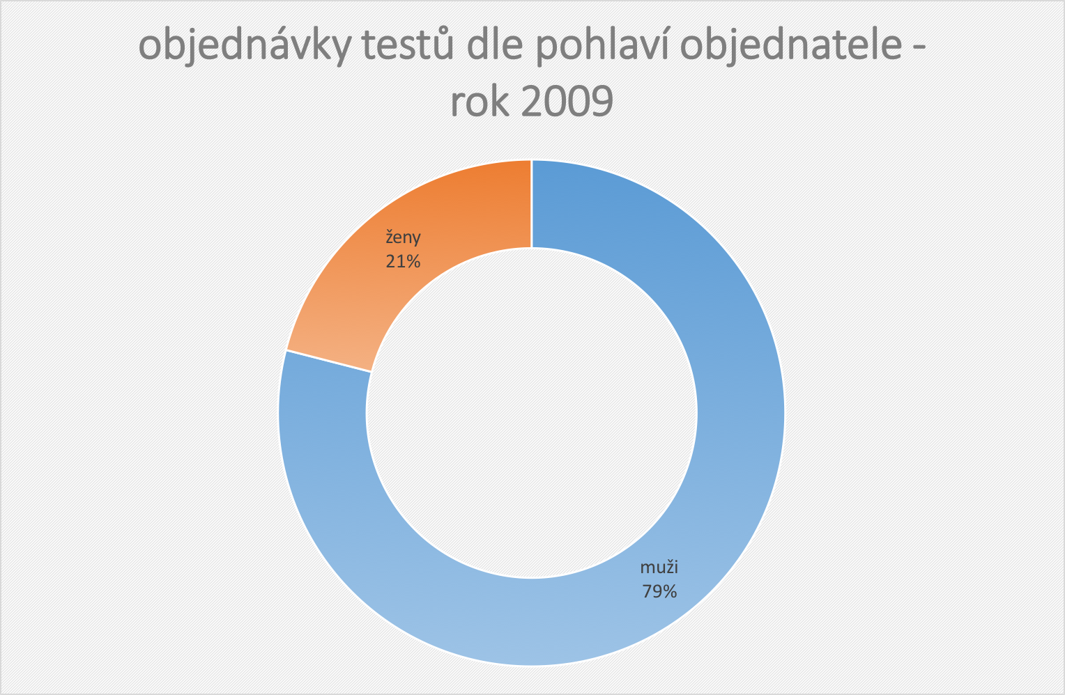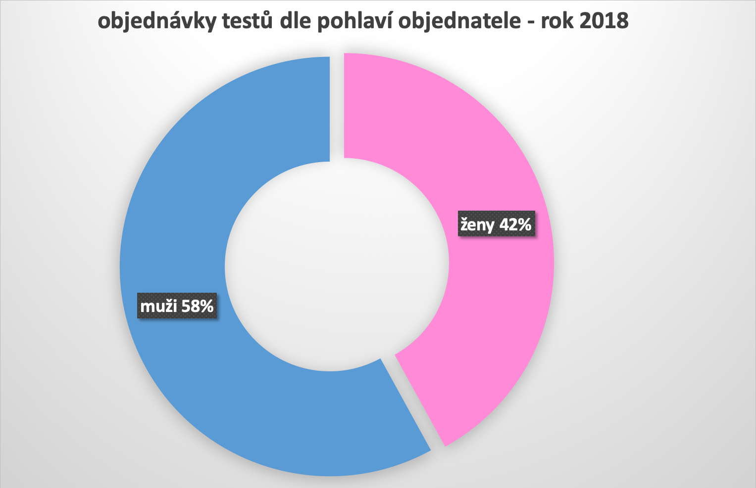 Zamówienia testów ojcostwa według płci zamawiającego i skumulowane wyniki testów ojcostwa w Republice Czeskiej.